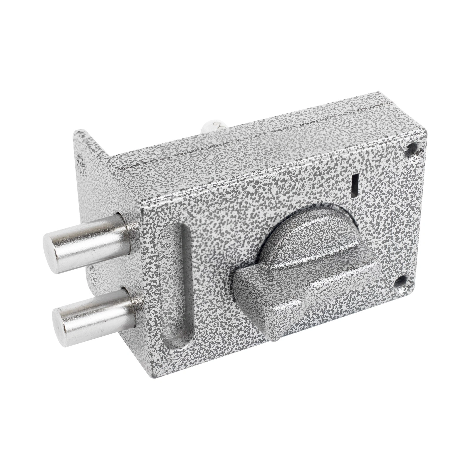 Засов из двух цилиндрических ригелей диаметром 14 мм, с максимальным вылетом 25 мм. Удаление ключевого отверстия - 60 мм.