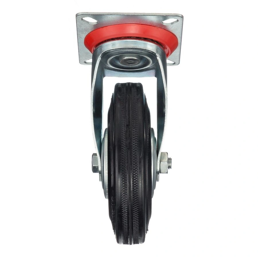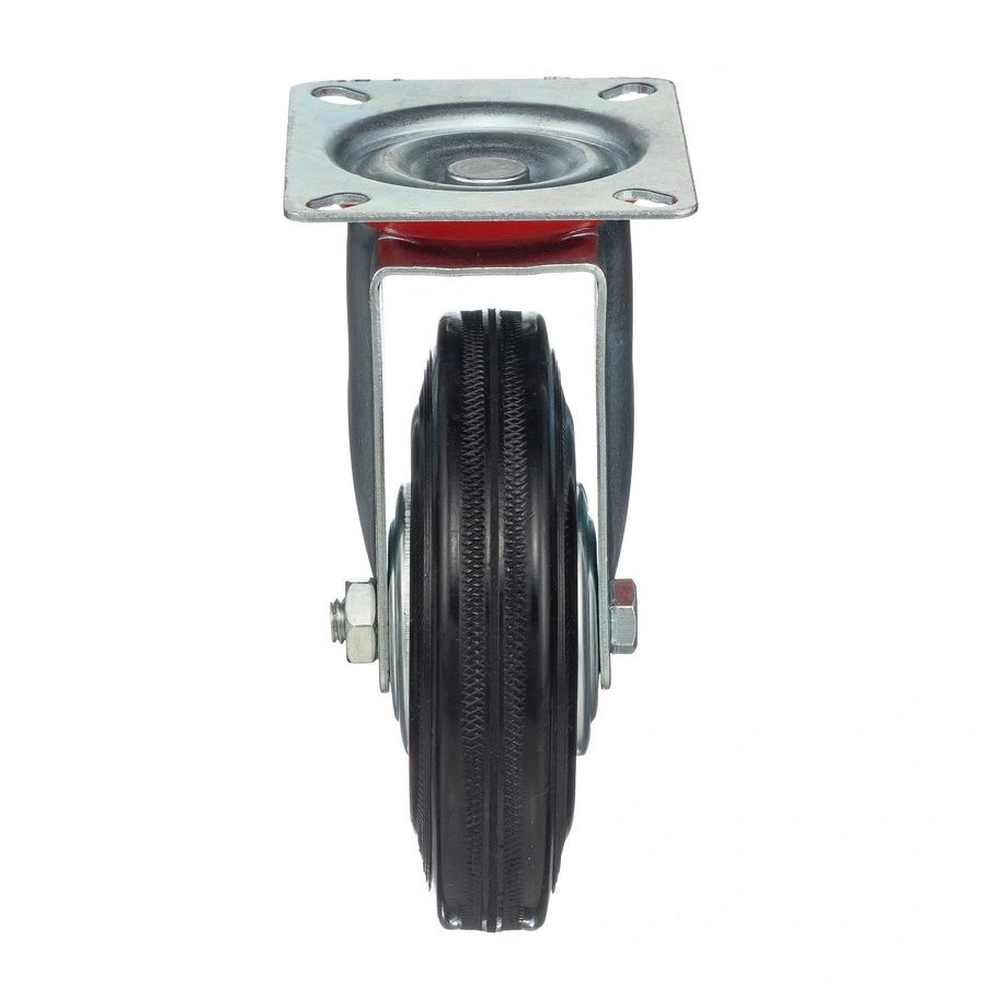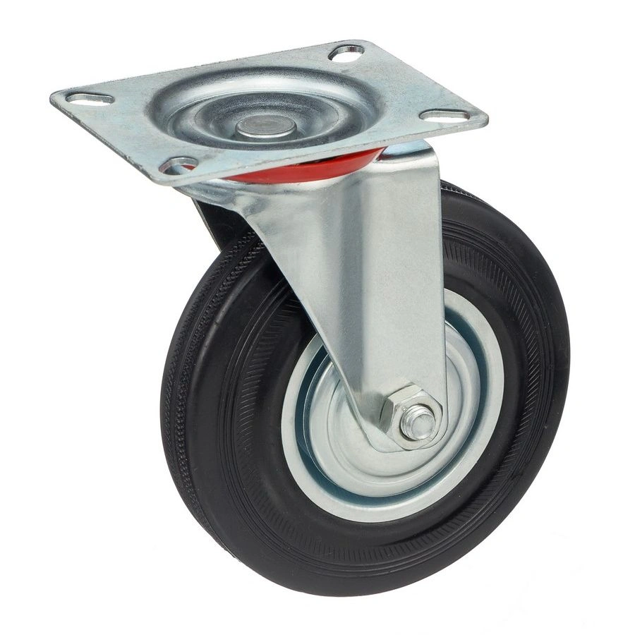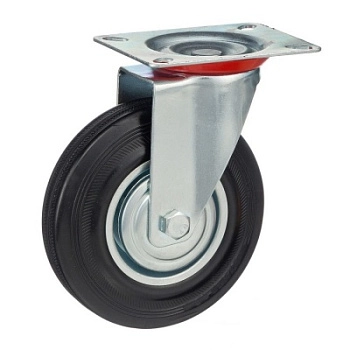Колесо поворотное 4001-125, диаметр 125мм., грузоподъемность 100кг. Колеса из черной литой резины, центр из двух гальванизированных дисков из штампованной стали. Роликовый (игольчатый) подшипник расположен в углублении, выдавленном под прессом, и содержит цилиндрические ролики подшипника. Кронштейн изготовлен прессованием из листовой стали. В поворотном узле двухрядный шарикоподшипник. Возможно применение на относительно грубых полах складов, заводов, производственных и строительных площадках. Данные колеса можно использовать на неровных поверхностях, во влажной окружающей среде и использовании вне помещения, не рекомендуется применять в среде с органическими растворителями, хлорированными веществами, гидрокарбонатами и минеральными маслами. Температура эксплуатации от -20 до +70С.