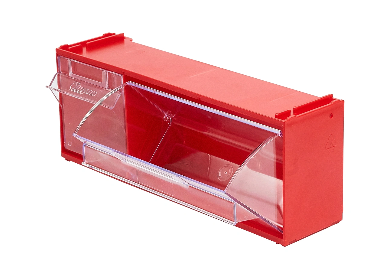 Короб откидной Стелла-техник F-300-2 (300х96х112мм.), красный, прозрачный служит для хранения мелкоштучных предметов. Данная система хранения не подвержена случайному опрокидыванию. Откидные удлиненная и стандартная ячейки обеспечивают быстрый доступ к необходимым предметам. В случае необходимости полного высыпания или наполнения внутренние ячейки легко извлекается. Полезный внутренний размер ячеек 184х65х70мм. и 88х65х70мм. Специальный пластик, из которого выполнен короб, выдерживает значительные нагрузки и обладает оптимальной эластичностью. На основе данных коробов можно сформировать многоярусную систему хранения, выстраивая вертикально. Данный короб, через отверстия на задней стенке, легко можно прикрепить к стене или установить на специальные кронштейны (Артикул: Кронштейны-FOX-750). Обзорность содержимого сквозь прозрачные внутренние ячейки, наличие отсека для информационных бирок, легкое извлечение внутреннего короба для опустошения и наполнения, все это является неоспоримым преимуществом откидных коробов серии F. Температура эксплуатации от -10 до +70С.