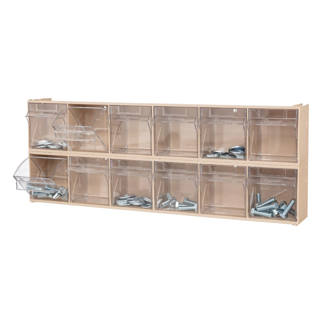Короб откидной F-600-6-B, 600х96х112 мм, 6 ячеек, бежевый / прозрачный служит для хранения мелкоштучных предметов. Данная система хранения не подвержена случайному опрокидыванию. Откидные ячейки обеспечивают быстрый доступ к необходимым предметам. В случае необходимости полного высыпания или наполнения короб легко извлекается. Полезный внутренний размер каждой ячейки 88х65х70мм.