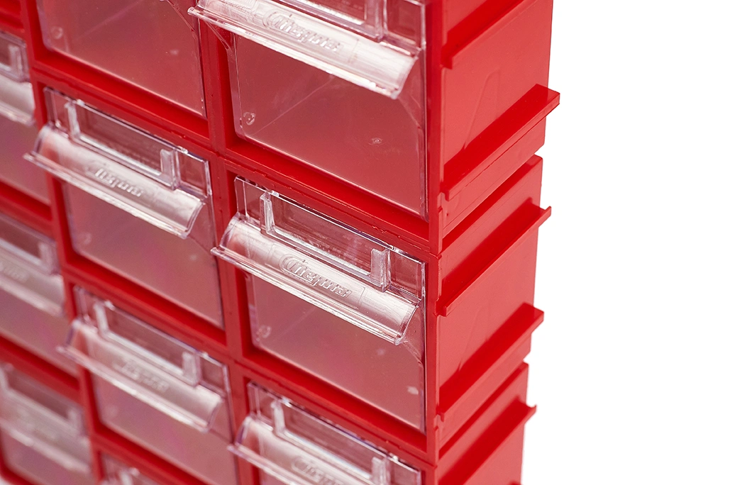 Короб откидной Стелла-техник Single-102 красный, прозрачный предназначен для хранения мелкоштучных изделий. Данная система хранения не подвержена случайному опрокидыванию. Полезный внутренний размер ячейки 88х65х70мм. Пластиковый короб имеет специальные пазы, благодаря которым можно соединять между собой несколько коробов, наращивать в ширину и высоту до нужных размеров, образуя модульную систему. На задней стенке присутствуют отверстия, что позволяют навешивать их на стену. Преимущества: Обзорность содержимого сквозь прозрачные внутренние ячейки. Стандартный цвет наружной кассеты откидного короба-красный, внутренней-прозрачный. На внутреннем коробе есть специальный отсек для информационных съемных бирок. Легкое и быстрое извлечение внутреннего короба для опустошения или наполнения. Температура эксплуатации от -10 до +70С.