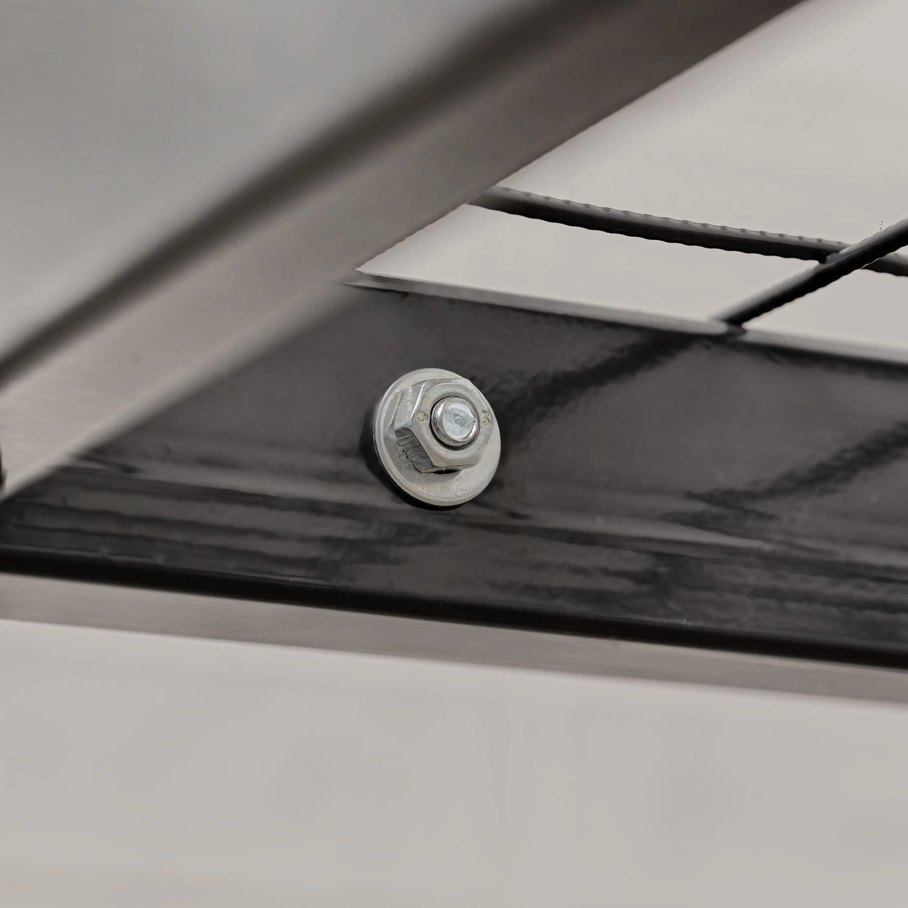 Кровать разборная из двух боковых стоек и спального места, крепящихся меж собой соединением «клин-петля»., обеспечивая надежное и просто соединение. На выбор клиента соединение можно заменить на болтовое. Вся кровать изготовлена из профильной трубы 40х20, сетка с ячейкой 100х50 мм. Все элементы кровати покрыты износоустойчивой полимерно - порошковой краской сероватого цвета. Допускаемая нагрузка на спальное пространство до 120 кг.
