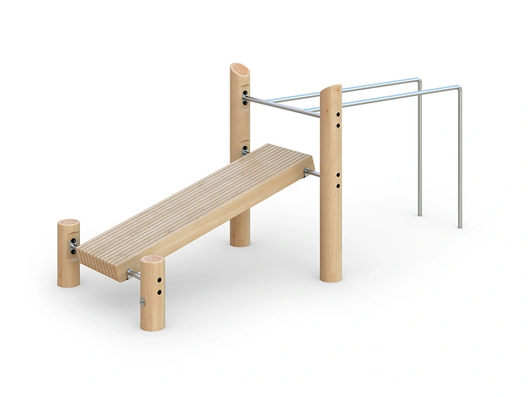 Выполнен из лиственницы / робинии с элементами из нержавеющей стали.