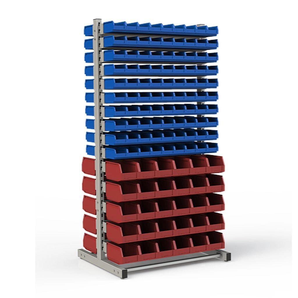 Стеллаж разработан специально для систематизации, хранения различных комплектующих, деталей, запчастей, крепежных и строительных материалов: болты, гайки, сверла, подшипники, метизы, фитинги, сантехника, зажимы, заклепки и т.д.
