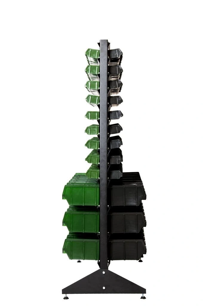 Стеллажи с ячейками упрощают работу с большим ассортиментом комплектующих и значительно сокращают время их поиска на складе или в магазине.