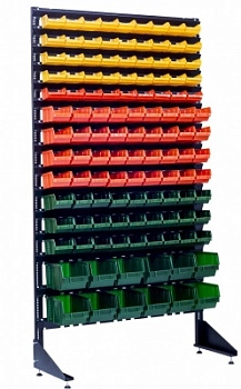 Стенд разработан специально для систематизации, хранения различных комплектующих, деталей, запчастей, крепежных и строительных материалов: болты, гайки, сверла, подшипники, метизы, фитинги, сантехника, зажимы, заклепки и т.д.