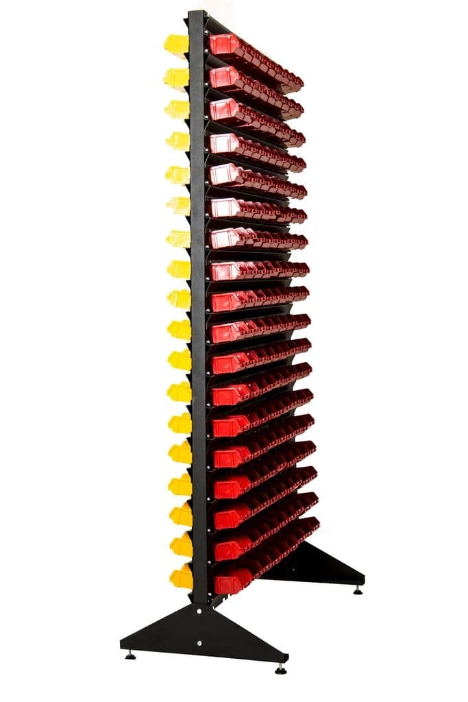 Стеллажи с ячейками упрощают работу с большим ассортиментом комплектующих и значительно сокращают время их поиска на складе или в магазине.