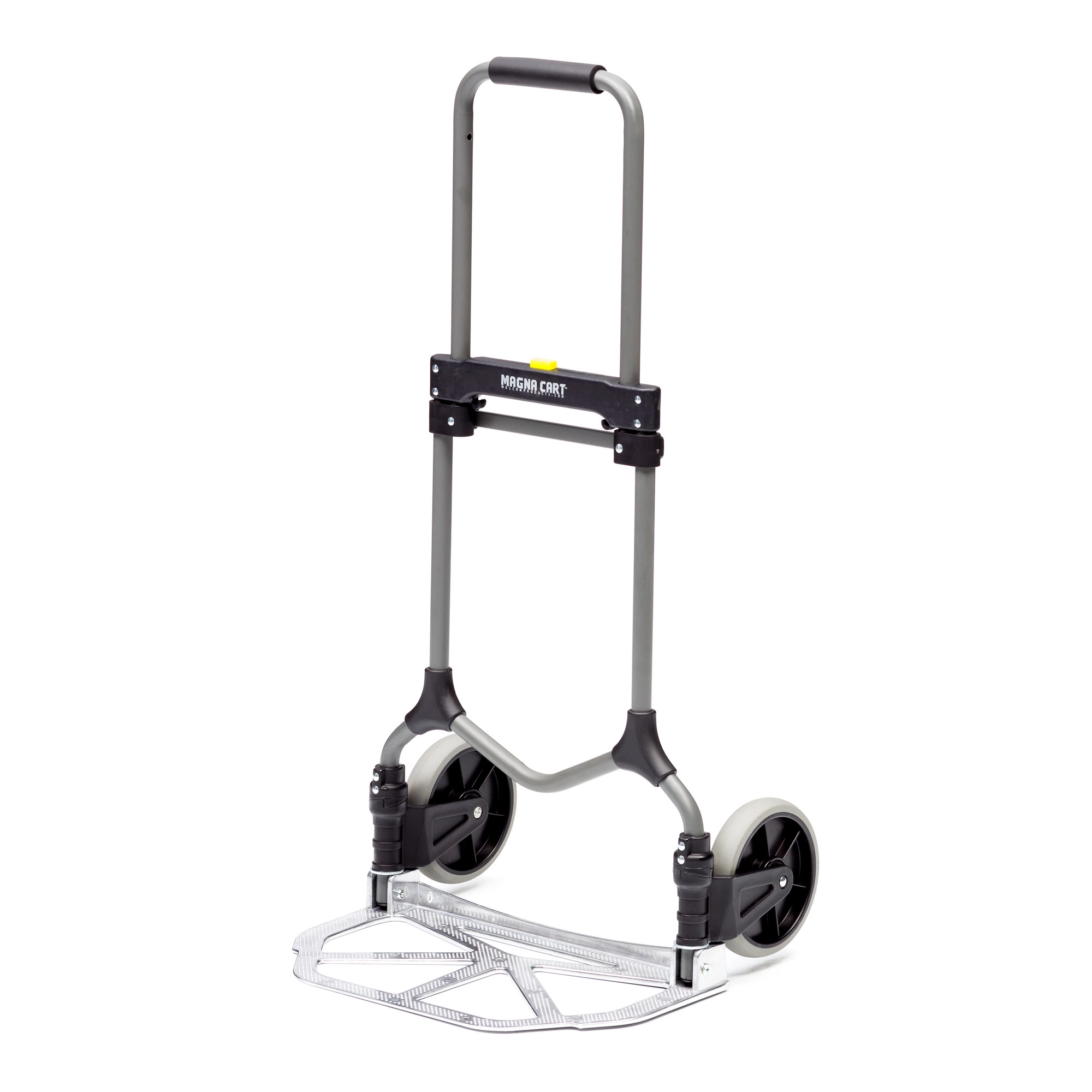 Складная двухколесная тележка MAGNA CART MC2 очень компактна, вынослива и легко поместится в багажник автомобиля или на полку в самолете. Прочный стальной корпус позволяет перемещать различные грузы весом до 90кг. Тележка, при желании, моментально раскладывается и собирается за счет сложения телескопической ручки и колес вдоль корпуса. Размер площадки 279х387мм., максимальная высота ручки 980мм., диаметр колес 180мм. Складные тележки идеально подходят для транспортировки выставочного оборудования, обслуживания маленьких складов и перевозки грузов в домашних условиях или во время путешествий. За счет узкого профиля и компактных размеров технику легко разместить на полке в самолете или багажнике машины.