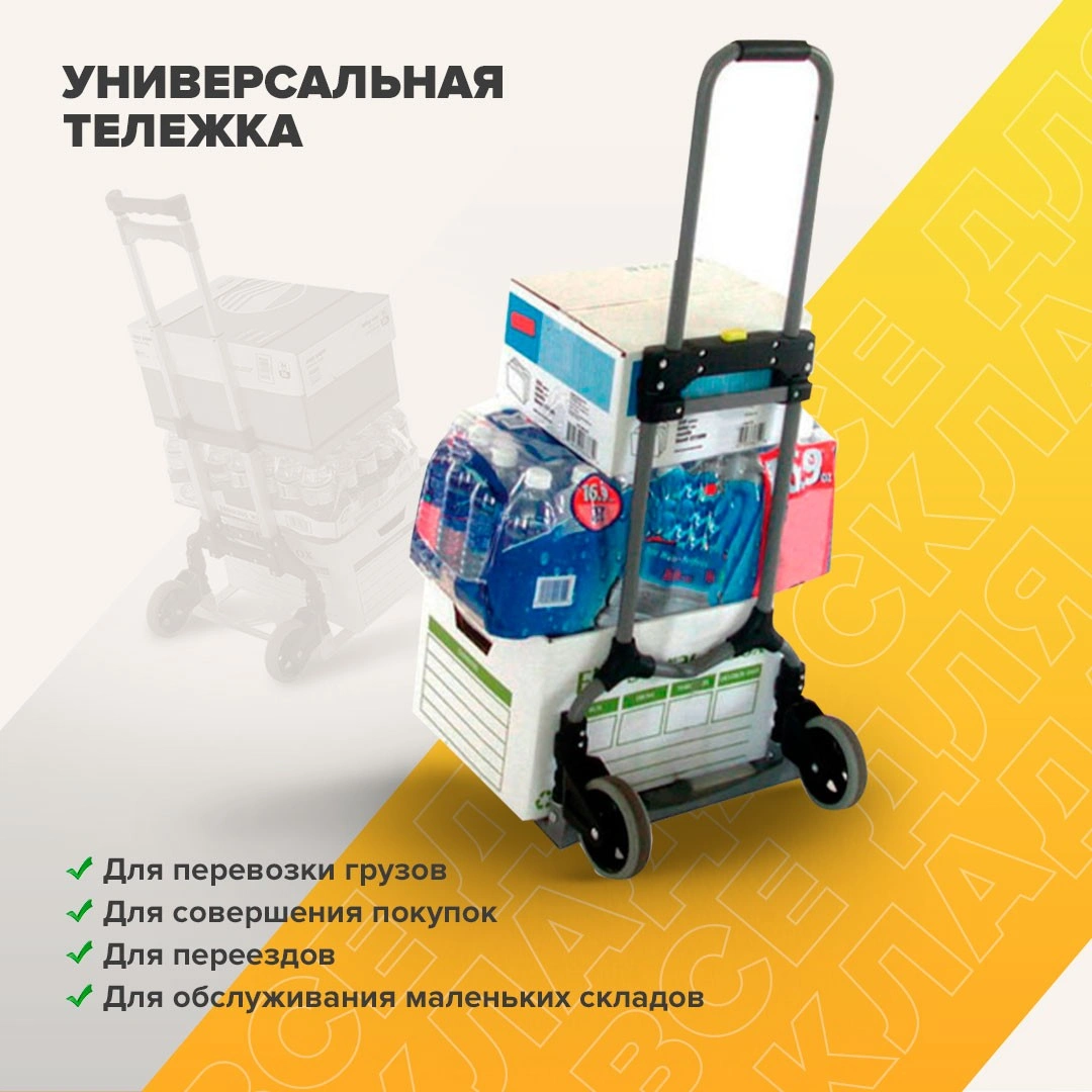Складная тележка MAGNA CART MCI из стали c максимальной грузоподъемностью 68кг. Тележка быстро и удобно раскладывается и собирается за счет сложения телескопической ручки и колес вдоль корпуса. Материал алюминий. Размер площадки 282х378мм, максимальная высота ручки 980мм., диаметр колес 121мм. Складные тележки идеально подходят для транспортировки выставочного оборудования, обслуживания маленьких складов и перевозки грузов в домашних условиях или во время путешествий. За счет узкого профиля и компактных размеров технику легко разместить на полке в самолете или багажнике машины.